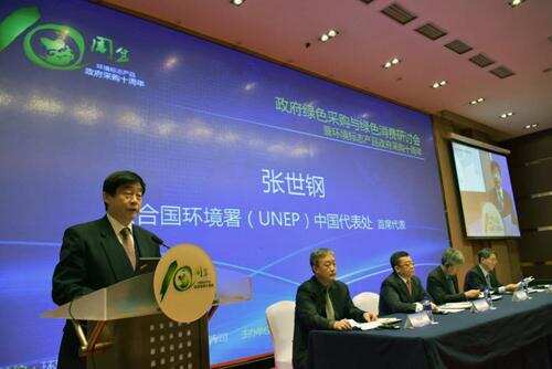 聯合國環境規劃署中國代表處首席代表張世鋼先生代表聯合國環境規劃署對中國環境標志產品政府采購碩果累累的十年歷程表示了祝賀。希望通過開展深入持續的國際合作與交流,與中國分享可持續公共采購相關經驗,傳遞中國環境標志產品政府采購“好聲音”,助力中國環境標志在國際舞臺上發揮越來越重要的作用。