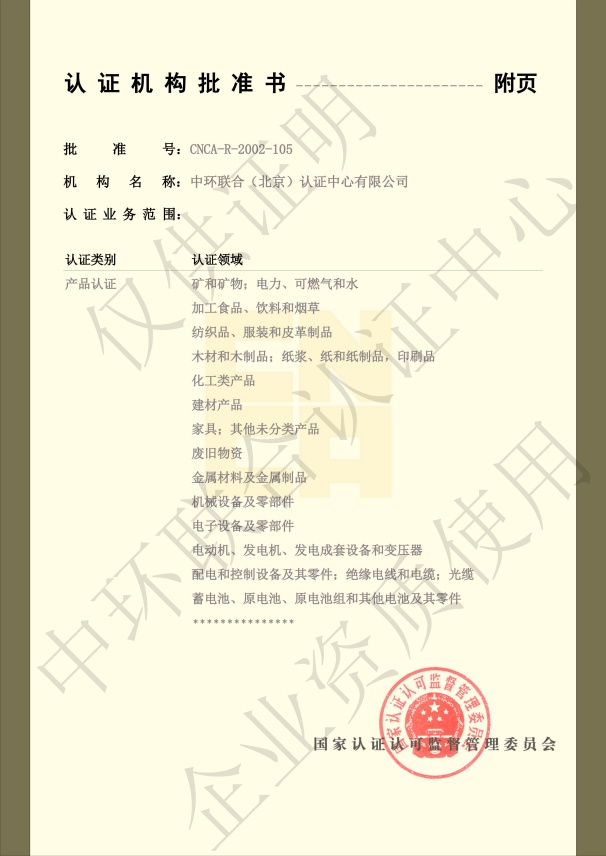 認證機構批準書附件