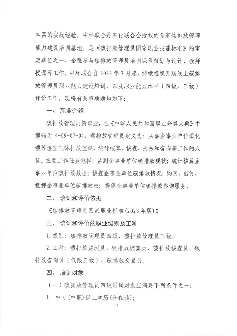 關于開展碳排放管理員職業能力建設培訓并組織職業能力水平評價的通知