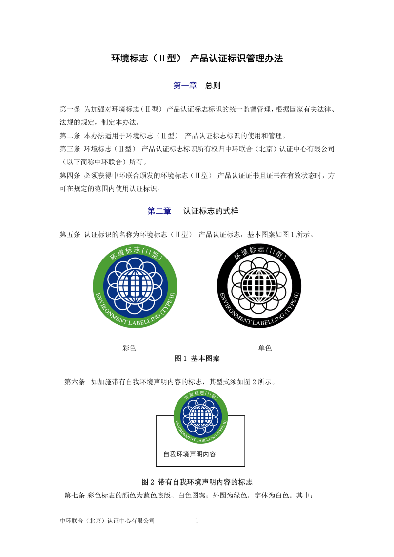 環境標志(II型)產品認證標識管理辦法