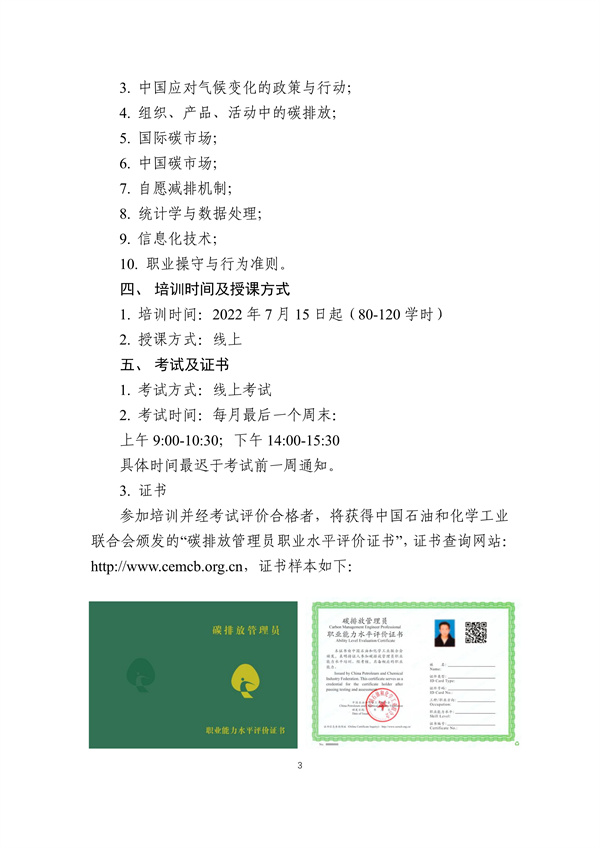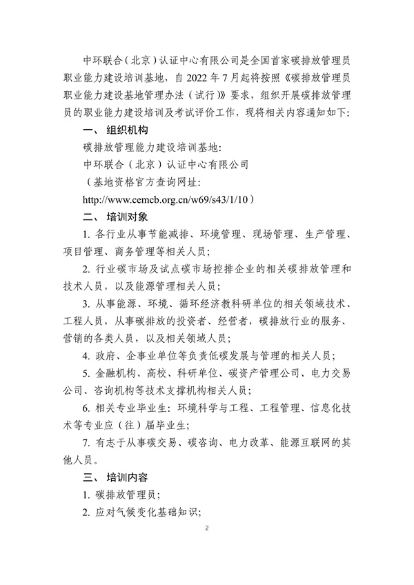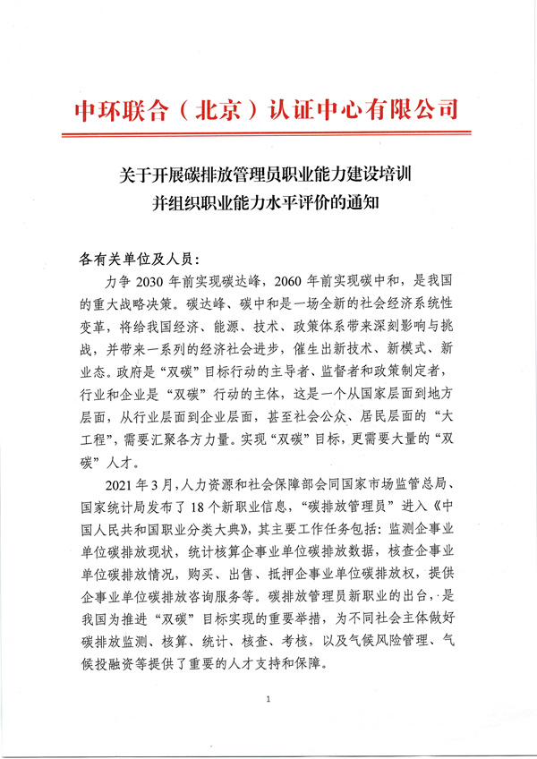 關(guān)于碳排放管理員職業(yè)能力建設(shè)培訓(xùn)及能力水平評價通知202208