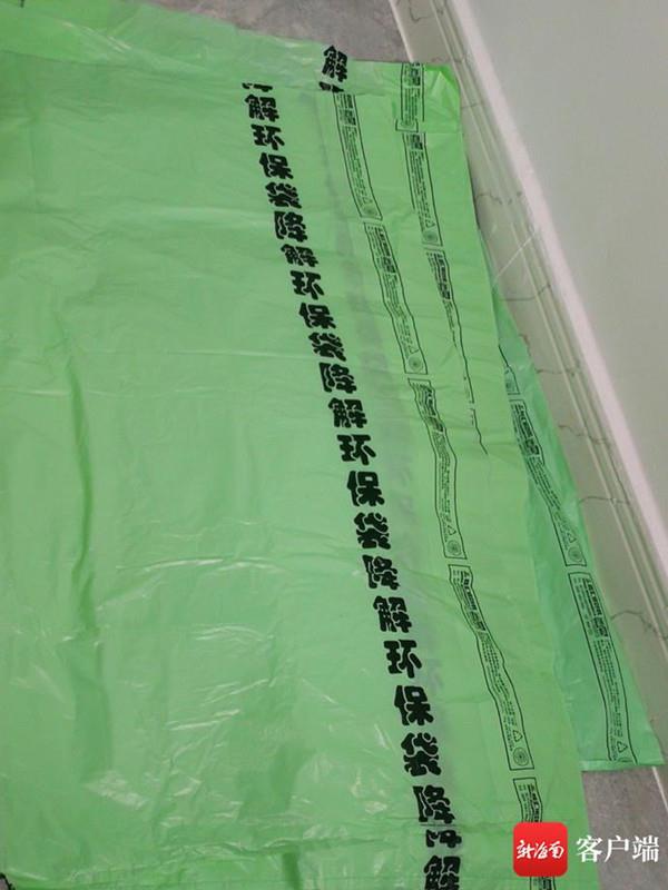 10月10日,執法人員對位于海口市秀英區金鹿工業園的海南鑫匯諾包裝制品有限公司生產場地進行檢查,發現該公司生產銷售的3款一次性塑料袋的袋身均標有“中國環境標志”字樣和圖標,另有1款塑料袋標有“全降解塑料袋,降解率100%”字樣。在現場,執法人員查封問題塑料袋共計7600個。