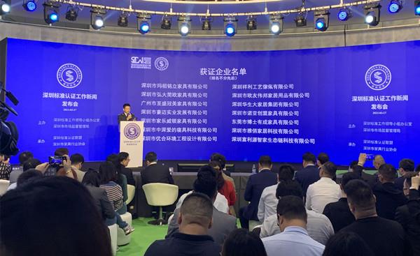 2021年初,深圳市向全國開放深圳標準認證申請,認證工作首先在家具行業(yè)試點。展會期間,由深圳標準工作領(lǐng)導(dǎo)小組辦公室、深圳市場監(jiān)督管理局主辦,深圳標準認證聯(lián)盟、深圳市家具行業(yè)協(xié)會承辦的“深圳標準認證工作新聞發(fā)布會”隆重舉行。發(fā)布會上,深圳市場監(jiān)管局公布了自今年初宣布深圳標準認證家具行業(yè)向全國開放后首批獲證企業(yè)名單,深圳市政府副秘書長黃強,中國輕工業(yè)聯(lián)合會黨委副書記、中國家具行業(yè)協(xié)會理事長徐祥楠,深圳市市場監(jiān)管局黨組成員、副局長李軍等領(lǐng)導(dǎo)出席。參會嘉賓共同為獲證企業(yè)頒發(fā)證書。此次發(fā)布會上共頒發(fā)深圳標準認證證書30家,其中,中環(huán)聯(lián)合承擔(dān)了浙江圣奧家具制造有限公司等7家企業(yè)的認證實施工作。