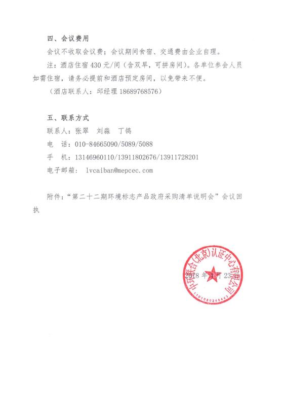 “第二十二期環境標志產品政府采購清單說明會”會議回執