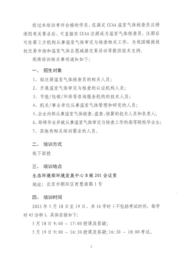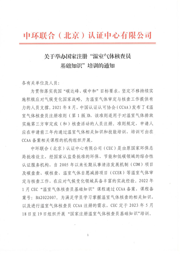 關于舉辦國家注冊溫室氣體核查員基礎知識培訓的通知-5月第一期